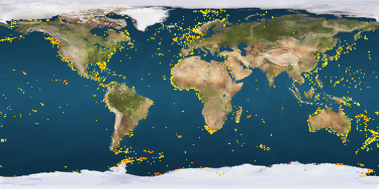 | Canada | 3487 | Atlantic Ocean | 421 | Southern Ocean | 132 | | United States | 3014 | French Polynesia | 299 | Norway | 105 | | Australia | 1381 | Spain | 262 | Saint Helena | 98 | | Panama | 1286 | Portugal | 208 | United Kingdom | 94 | | South Africa | 707 | Argentina | 187 | Saudi Arabia | 91 | | Costa Rica | 512 | Colombia | 179 | Indonesia | 87 | | Mexico | 432 | Peru | 152 | | |