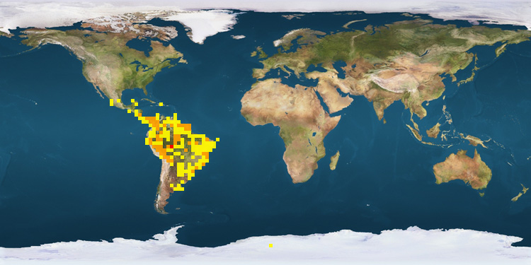 | Brazil | 628 | Venezuela | 50 | Suriname | 8 | | Peru | 282 | Argentina | 43 | Honduras | 7 | | Colombia | 214 | Nicaragua | 27 | Paraguay | 4 | | Bolivia | 137 | Mexico | 19 | Philippines | 2 | | Ecuador | 67 | Dominican Republic | 10 | | | | Panama | 67 | Costa Rica | 9 | | |