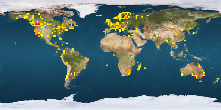 | Canada | 1835 | Austria | 123 | Thailand | 59 | | United States | 1042 | Mexico | 108 | Argentina | 50 | | South Africa | 424 | United Kingdom | 85 | Ivory Coast | 42 | | Australia | 404 | Ecuador | 78 | New Zealand | 35 | | Costa Rica | 223 | Peru | 76 | Sweden | 35 | | Germany | 176 | Portugal | 65 | Bangladesh | 28 | | Colombia | 145 | Slovenia | 61 | | |