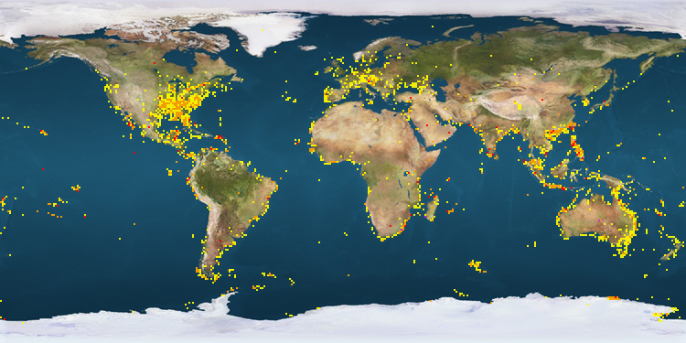 | United States | 4408 | Madagascar | 1651 | Taiwan | 501 | | Canada | 3007 | South Africa | 1358 | Costa Rica | 464 | | Indonesia | 2758 | India | 1017 | New Caledonia | 413 | | Philippines | 2552 | French Polynesia | 871 | Vietnam | 393 | | Australia | 2490 | Brazil | 852 | Panama | 366 | | China | 2389 | Peru | 725 | France | 352 | | Mexico | 2281 | Malaysia | 528 | | |