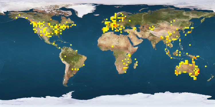 | Australia | 725 | United Kingdom | 65 | Finland | 29 | | Canada | 498 | Austria | 63 | Portugal | 20 | | United States | 204 | France | 57 | Bhutan | 17 | | Germany | 170 | Norway | 37 | Kenya | 15 | | Italy | 120 | Malaysia | 35 | Taiwan | 11 | | China | 90 | Spain | 33 | Japan | 10 | | Papua New Guinea | 89 | South Africa | 29 | | |