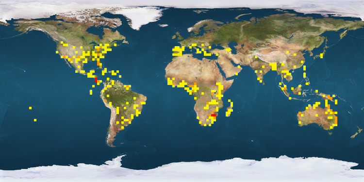 | Costa Rica | 678 | Gabon | 50 | Spain | 20 | | South Africa | 542 | China | 40 | Tanzania | 18 | | United States | 299 | Mexico | 35 | Cameroon | 16 | | Australia | 209 | Sao Tome and Principe | 24 | Argentina | 14 | | Malaysia | 89 | Peru | 23 | Colombia | 13 | | Papua New Guinea | 65 | Ghana | 23 | Ecuador | 11 | | Canada | 61 | Brazil | 23 | | |