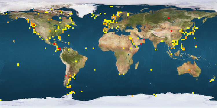 | Panama | 1274 | United Kingdom | 70 | Mexico | 12 | | United States | 1190 | China | 63 | South Africa | 7 | | Canada | 558 | Costa Rica | 60 | Portugal | 6 | | Australia | 355 | Argentina | 36 | Russia | 5 | | Oman | 193 | Spain | 35 | Brazil | 4 | | Norway | 94 | Timor-Leste | 24 | Atlantic Ocean | 3 | | Saudi Arabia | 74 | Japan | 18 | | |