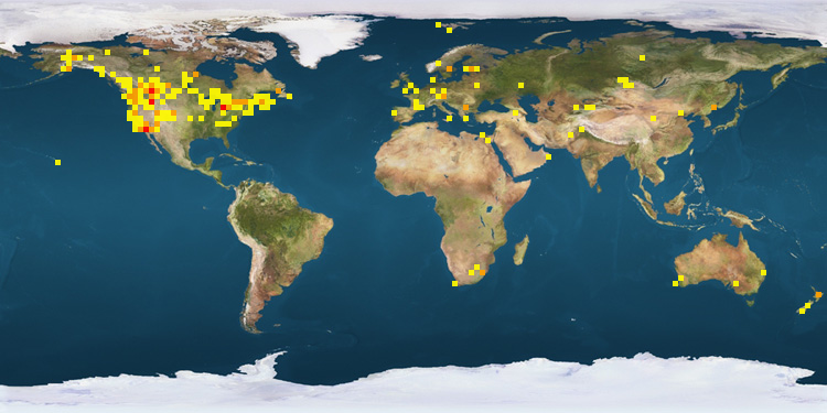 | Canada | 1418 | Australia | 12 | Belarus | 3 | | United States | 945 | Pakistan | 12 | Portugal | 3 | | South Africa | 56 | Peru | 12 | Egypt | 3 | | New Zealand | 53 | Norway | 12 | Italy | 2 | | Russia | 29 | France | 8 | Ecuador | 1 | | Germany | 25 | Kazakhstan | 5 | Thailand | 1 | | Bulgaria | 20 | China | 3 | | |
