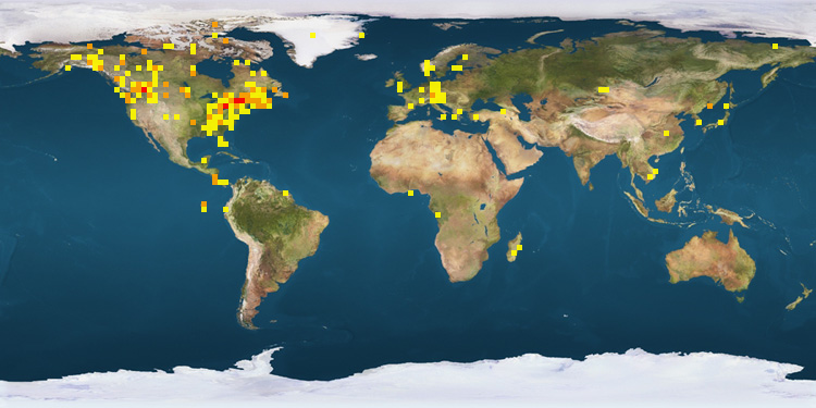 | Canada | 2195 | Russia | 20 | Vietnam | 4 | | United States | 406 | Germany | 18 | Bulgaria | 3 | | Costa Rica | 117 | Austria | 9 | Sweden | 2 | | Ecuador | 49 | Norway | 6 | United Kingdom | 2 | | Guinea | 41 | Japan | 5 | China | 2 | | Ivory Coast | 39 | Italy | 5 | France | 2 | | Ghana | 23 | South Korea | 4 | | |