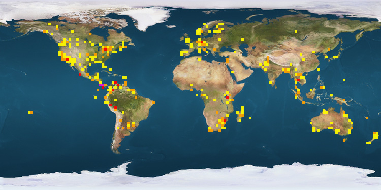 | Costa Rica | 9049 | Colombia | 323 | Ecuador | 129 | | Peru | 1354 | Venezuela | 283 | Tanzania | 126 | | Mexico | 1035 | Argentina | 270 | Trinidad and Tobago | 126 | | United States | 862 | Germany | 258 | Honduras | 99 | | Canada | 499 | Bangladesh | 151 | Brazil | 98 | | Thailand | 407 | Ghana | 139 | Lebanon | 95 | | South Africa | 361 | Australia | 133 | | |