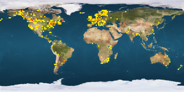 | Canada | 2870 | Netherlands | 72 | South Africa | 24 | | Germany | 536 | Sweden | 59 | Russia | 24 | | United States | 286 | Argentina | 54 | Bangladesh | 23 | | Norway | 147 | Finland | 46 | France | 19 | | Chile | 117 | Pakistan | 42 | Portugal | 16 | | Costa Rica | 96 | Romania | 26 | India | 9 | | United Kingdom | 90 | Austria | 24 | | |