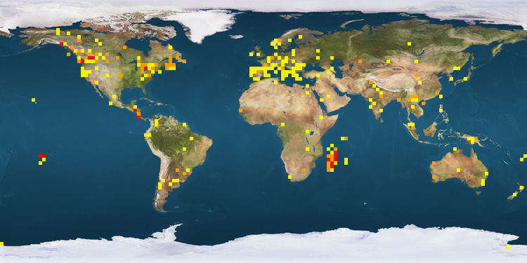 | Canada | 1818 | Argentina | 60 | Bangladesh | 26 | | Madagascar | 1600 | Malaysia | 59 | Mexico | 16 | | Costa Rica | 417 | Australia | 46 | Spain | 16 | | China | 228 | Papua New Guinea | 38 | South Africa | 14 | | Honduras | 169 | Germany | 35 | India | 11 | | United States | 166 | Pakistan | 28 | Colombia | 10 | | Kenya | 115 | Norway | 27 | | |
