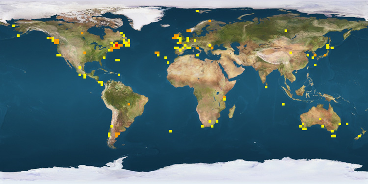 | Canada | 451 | Panama | 15 | South Africa | 3 | | United States | 169 | Kenya | 15 | Brazil | 3 | | Argentina | 147 | Netherlands | 9 | Bonaire, Sint Eustatius, and Saba | 2 | | France | 67 | Japan | 6 | Malta | 2 | | United Kingdom | 34 | South Korea | 6 | Colombia | 1 | | Australia | 22 | Spain | 5 | | | | Norway | 21 | Saint Helena | 5 | | |