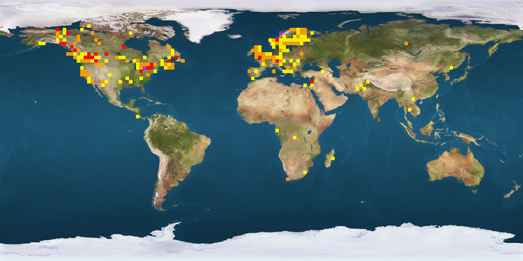 | Canada | 7850 | Finland | 62 | Sweden | 11 | | Norway | 4798 | United Kingdom | 43 | Austria | 10 | | Germany | 888 | Belarus | 35 | Pakistan | 10 | | Lebanon | 417 | France | 25 | Georgia | 8 | | United States | 394 | Russia | 17 | Romania | 7 | | Bulgaria | 94 | Netherlands | 17 | Thailand | 6 | | South Africa | 62 | Portugal | 15 | | |