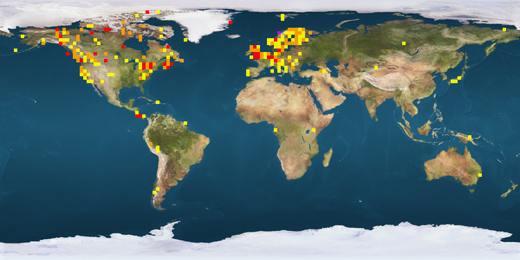 | Canada | 6331 | Sweden | 39 | Peru | 11 | | Norway | 1809 | United Kingdom | 35 | Georgia | 11 | | Germany | 1028 | Russia | 24 | Kenya | 7 | | Costa Rica | 375 | Austria | 18 | France | 6 | | United States | 312 | Portugal | 17 | Italy | 4 | | Netherlands | 62 | Bulgaria | 17 | Denmark | 4 | | Finland | 40 | Romania | 12 | | |
