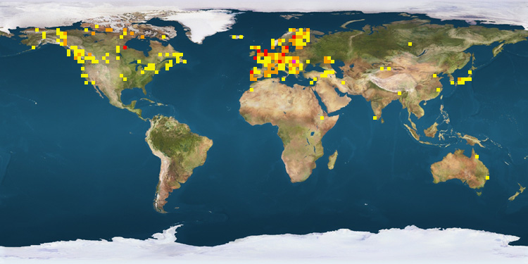 | Canada | 1285 | Russia | 23 | South Korea | 6 | | Germany | 379 | France | 21 | Portugal | 4 | | United States | 119 | Austria | 21 | Croatia | 3 | | Netherlands | 56 | Finland | 21 | Georgia | 2 | | Norway | 47 | China | 19 | Sweden | 1 | | United Kingdom | 38 | Slovakia | 13 | Spain | 1 | | Poland | 24 | Australia | 10 | | |