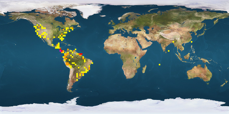 | Costa Rica | 2679 | Colombia | 81 | Venezuela | 7 | | United States | 195 | Argentina | 79 | Honduras | 3 | | Peru | 134 | Mexico | 40 | Bolivia | 2 | | Canada | 122 | Panama | 38 | Taiwan | 2 | | Brazil | 113 | French Guiana | 15 | Bangladesh | 1 | | Ecuador | 87 | Suriname | 14 | | |