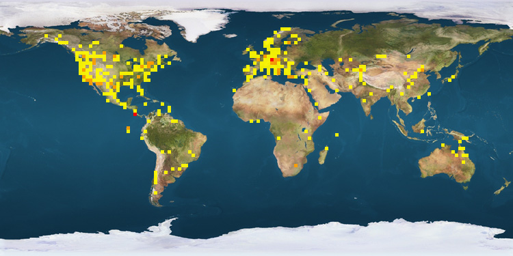 | United States | 615 | China | 48 | Australia | 20 | | Canada | 279 | United Kingdom | 37 | Ghana | 19 | | Germany | 157 | Ecuador | 35 | Portugal | 17 | | Costa Rica | 142 | Greece | 28 | South Africa | 14 | | Italy | 72 | Norway | 23 | Spain | 12 | | France | 64 | Kenya | 22 | Pakistan | 10 | | Austria | 59 | Mexico | 20 | | |
