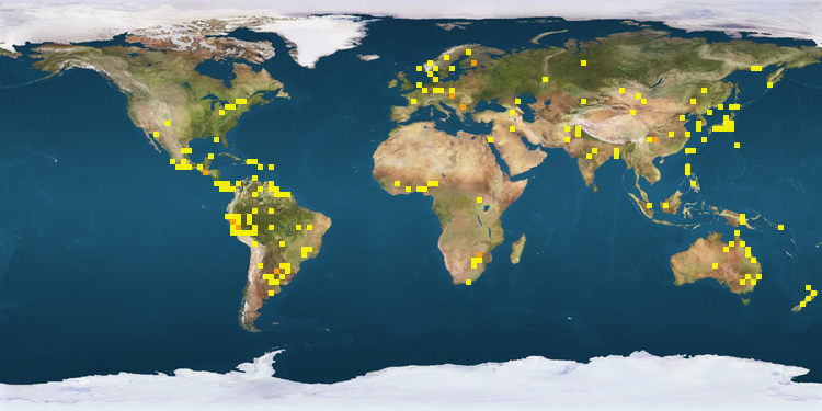 | Peru | 49 | Brazil | 17 | Russia | 12 | | Argentina | 38 | Colombia | 13 | United States | 8 | | Australia | 38 | El Salvador | 13 | Nigeria | 7 | | South Africa | 26 | Canada | 13 | New Zealand | 6 | | Panama | 23 | Papua New Guinea | 12 | Costa Rica | 6 | | Japan | 21 | Philippines | 12 | Netherlands | 5 | | Mexico | 18 | Indonesia | 12 | | |