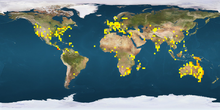 | Australia | 622 | Kenya | 51 | Ghana | 17 | | United States | 316 | Italy | 51 | France | 16 | | Papua New Guinea | 148 | China | 48 | United Arab Emirates | 15 | | Costa Rica | 116 | Greece | 28 | South Korea | 14 | | South Africa | 106 | Madagascar | 21 | Israel | 12 | | Canada | 104 | United Kingdom | 20 | Austria | 12 | | Germany | 54 | Thailand | 17 | | |