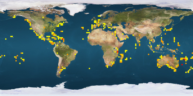 | Australia | 450 | United States | 92 | Netherlands | 12 | | New Caledonia | 367 | Brazil | 81 | Philippines | 11 | | Canada | 193 | Bonaire, Sint Eustatius, and Saba | 81 | Spain | 10 | | French Polynesia | 163 | Argentina | 60 | Saint Vincent and the Grenadines | 9 | | Panama | 135 | Indonesia | 30 | Costa Rica | 9 | | Papua New Guinea | 115 | Northern Mariana Islands | 15 | South Korea | 8 | | Micronesia | 100 | Antigua and Barbuda | 13 | | |