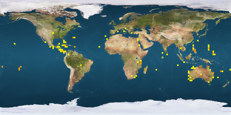 | Brazil | 38 | Panama | 10 | Cuba | 2 | | Micronesia | 31 | Papua New Guinea | 8 | Mexico | 2 | | New Caledonia | 29 | Philippines | 7 | Greece | 1 | | Bonaire, Sint Eustatius, and Saba | 23 | Northern Mariana Islands | 4 | | | | Australia | 14 | Mauritius | 3 | | |