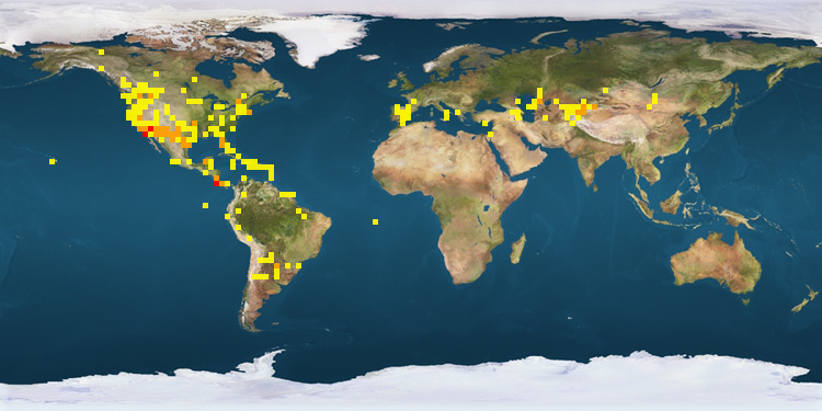 | United States | 1287 | Peru | 14 | Puerto Rico | 5 | | Costa Rica | 952 | Kazakhstan | 13 | Cayman Islands | 5 | | Canada | 175 | Colombia | 12 | Saint Helena | 4 | | Kyrgyzstan | 40 | Spain | 12 | Brazil | 4 | | Argentina | 38 | Russia | 7 | Suriname | 4 | | Mexico | 38 | Panama | 7 | Portugal | 3 | | Ecuador | 21 | Italy | 5 | | |