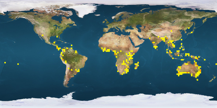 | Australia | 191 | Myanmar | 14 | South Africa | 10 | | Costa Rica | 44 | Vietnam | 13 | Indonesia | 9 | | India | 36 | Colombia | 12 | Taiwan | 8 | | Malaysia | 36 | Gabon | 12 | Philippines | 7 | | Papua New Guinea | 27 | Ghana | 11 | Brazil | 7 | | Madagascar | 27 | Bangladesh | 11 | Thailand | 6 | | Peru | 20 | China | 10 | | |