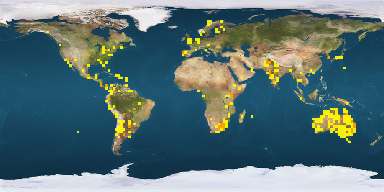 | Australia | 357 | China | 51 | Peru | 11 | | South Africa | 203 | United States | 43 | Brazil | 10 | | India | 117 | Pakistan | 37 | Mozambique | 8 | | Mexico | 94 | Colombia | 33 | United Arab Emirates | 7 | | Argentina | 71 | Canada | 27 | Indonesia | 6 | | Costa Rica | 65 | Netherlands | 16 | Norway | 5 | | Kenya | 60 | United Kingdom | 13 | | |