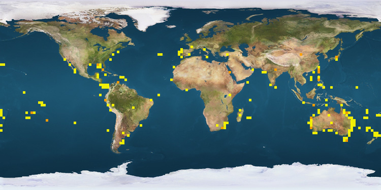 | Australia | 159 | Taiwan | 25 | Atlantic Ocean | 8 | | South Africa | 77 | Indonesia | 23 | Sri Lanka | 8 | | Philippines | 69 | Netherlands | 22 | Bonaire, Sint Eustatius, and Saba | 7 | | Peru | 51 | Mexico | 15 | Micronesia | 5 | | French Polynesia | 42 | Vanuatu | 10 | Tonga | 5 | | Saudi Arabia | 39 | India | 9 | Portugal | 5 | | United States | 36 | Madagascar | 9 | | |