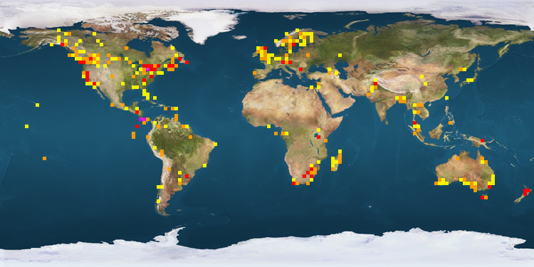 | Costa Rica | 13558 | Thailand | 301 | Ivory Coast | 133 | | Canada | 5802 | Bangladesh | 247 | Austria | 132 | | United States | 1542 | Pakistan | 234 | United Kingdom | 125 | | Australia | 1053 | Germany | 219 | Peru | 120 | | South Africa | 1030 | Honduras | 210 | Malaysia | 118 | | Argentina | 621 | Guinea | 202 | Papua New Guinea | 117 | | New Zealand | 567 | Bulgaria | 142 | | |