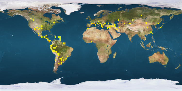 | Costa Rica | 93 | Ecuador | 18 | Brazil | 4 | | United States | 67 | Mongolia | 15 | Kyrgyzstan | 4 | | Mexico | 45 | Canada | 11 | Panama | 3 | | France | 45 | Kazakhstan | 9 | Japan | 3 | | Argentina | 31 | Bolivia | 7 | Austria | 3 | | Greece | 21 | Morocco | 5 | China | 2 | | Peru | 20 | Colombia | 5 | | |