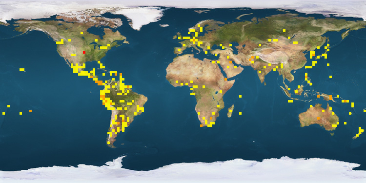 | Peru | 174 | Philippines | 39 | Canada | 22 | | Argentina | 153 | Kuwait | 38 | Bolivia | 20 | | Australia | 79 | South Africa | 37 | Sao Tome and Principe | 19 | | Panama | 71 | Brazil | 36 | Colombia | 18 | | Papua New Guinea | 51 | Afghanistan | 28 | Germany | 17 | | Indonesia | 51 | Japan | 26 | Russia | 17 | | Mexico | 41 | United States | 24 | | |