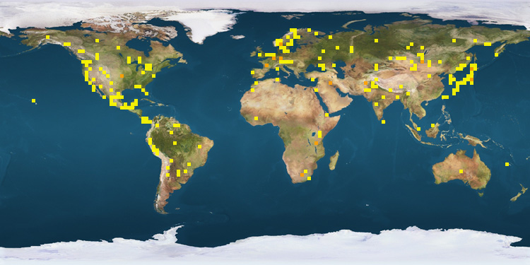 | United States | 71 | Netherlands | 26 | Argentina | 12 | | Japan | 67 | Mongolia | 20 | Panama | 11 | | Russia | 62 | Austria | 20 | Slovakia | 6 | | Mexico | 45 | South Korea | 17 | Germany | 6 | | Canada | 42 | Afghanistan | 16 | Indonesia | 5 | | Norway | 29 | Sweden | 16 | Iran | 4 | | Peru | 28 | Pakistan | 15 | | |