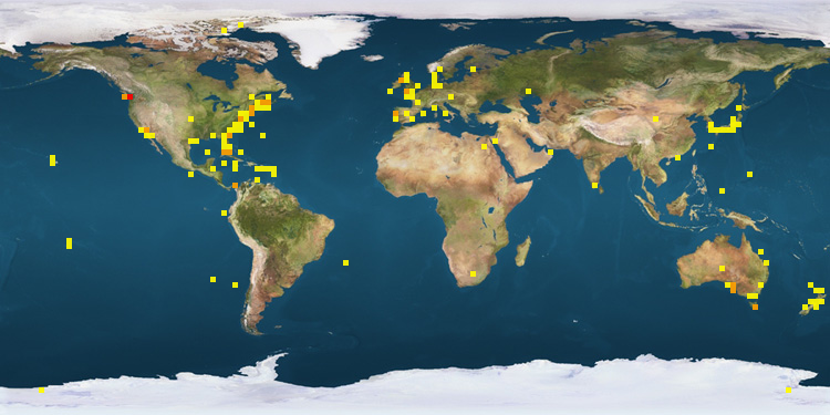 | Canada | 999 | France | 5 | Antarctica | 2 | | United States | 393 | China | 3 | Norway | 1 | | Australia | 106 | Italy | 3 | Netherlands | 1 | | United Kingdom | 49 | New Zealand | 2 | Mexico | 1 | | North Atlantic Ocean | 38 | French Polynesia | 2 | Southern Ocean | 1 | | Panama | 19 | India | 2 | Spain | 1 | | Japan | 11 | Germany | 2 | | |