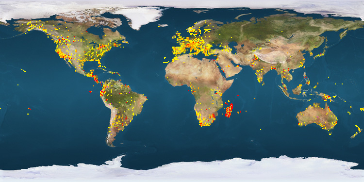 | Costa Rica | 22325 | Australia | 4031 | Ghana | 1380 | | Madagascar | 13475 | Panama | 2882 | Brazil | 1278 | | Ecuador | 9017 | Argentina | 2677 | Bangladesh | 1266 | | South Africa | 8744 | Colombia | 2153 | Thailand | 1263 | | Canada | 8095 | Egypt | 2024 | Papua New Guinea | 1238 | | United States | 5619 | Pakistan | 1985 | Switzerland | 1158 | | Peru | 5056 | Ivory Coast | 1761 | | |