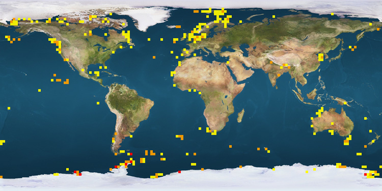 | Canada | 251 | Antarctica | 8 | Greece | 3 | | United States | 116 | United Kingdom | 8 | Portugal | 2 | | Australia | 80 | Argentina | 5 | Pacific Ocean | 1 | | Atlantic Ocean | 78 | Israel | 5 | Spain | 1 | | Southern Ocean | 67 | Mexico | 4 | | | | Norway | 11 | South Korea | 3 | | |