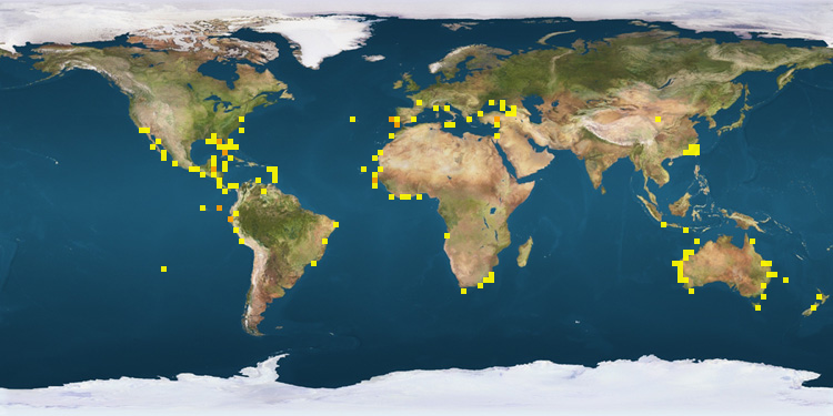 | United States | 76 | Panama | 8 | Turkiye | 3 | | Mexico | 51 | Brazil | 8 | Atlantic Ocean | 3 | | Australia | 31 | Ukraine | 7 | Netherlands | 3 | | Spain | 25 | Georgia | 6 | South Africa | 2 | | Peru | 19 | Israel | 6 | Indonesia | 2 | | Portugal | 13 | Italy | 5 | India | 1 | | Costa Rica | 10 | Guadeloupe | 5 | | |
