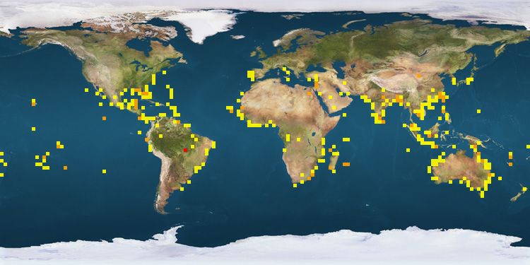 | Australia | 187 | Peru | 50 | Vanuatu | 35 | | United States | 102 | China | 48 | South Africa | 28 | | Madagascar | 91 | Malaysia | 46 | Thailand | 25 | | Brazil | 81 | Philippines | 43 | Taiwan | 23 | | Mexico | 71 | Bangladesh | 43 | France | 23 | | India | 70 | Costa Rica | 40 | Cambodia | 23 | | Indonesia | 55 | French Polynesia | 37 | | |