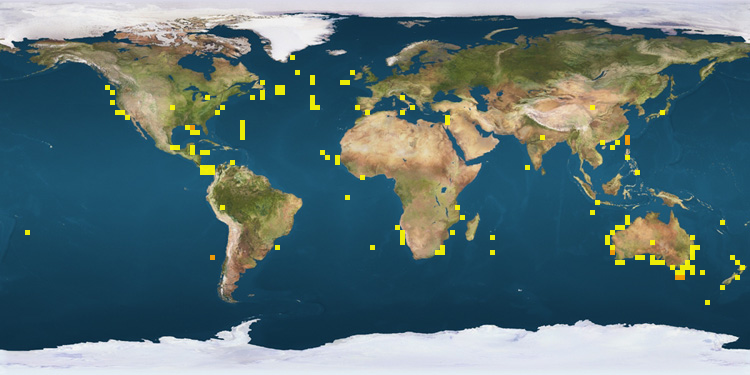 | Australia | 126 | Philippines | 5 | Atlantic Ocean | 2 | | Taiwan | 22 | Portugal | 4 | Israel | 2 | | Chile | 20 | Vanuatu | 3 | Ivory Coast | 1 | | Canada | 11 | Japan | 3 | Brazil | 1 | | Indian Ocean | 10 | China | 3 | Costa Rica | 1 | | Indonesia | 9 | South Africa | 3 | Netherlands | 1 | | United States | 9 | Namibia | 3 | | |